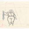 A layout drawing from the Ralph Bakshi Studios (c.1970/80s). Featuring a rough sketch of a seductive woman with arrows depicting her potential movement during the final animated sequence, the graphite on paper drawing was created at the studio and used during the animation process. Measuring 10.5"x12.5" overall and with the character image measuring 6.5"x6", the drawing is in very good condition with light wrinkling throughout.
